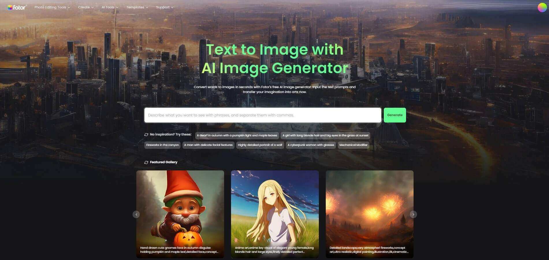 Fotor是一款一站式的AI繪畫免費網站,你只需要將想法輸入生成器中,等待幾秒,便能得到AI繪畫。此外,ai繪畫軟件免費Fotor還提供了隨機、3D、動漫等繪畫風格供你選擇。Fotor的AI繪畫功能適合新手使用,只需要通過簡單的文字輸入,即生成AI繪畫。如果你對生成的AI繪畫不滿意,可以重復生成。每個賬號每天有一個額度,可供你免費生成高質量的AI繪畫作品。