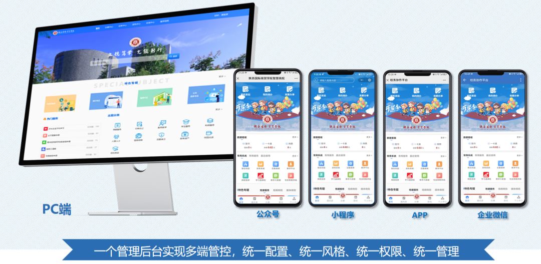 陜西國際商貿學院于2021年完成了校務協作平臺(一網通辦)PC端和企業微信的網站建設,構建了完整的PC/移動一體化一站式服務平臺, “校務協作平臺”依托一站式辦事流程服務平臺,為師生提供統一的校園辦事服務入口,力求實現校內在線辦事服務的優化整合。經過兩年的探索實踐,陜商院“校務協作平臺”的基礎能力不斷強化,服務配套逐步完善,在此基礎上,催生出信息化應用融合拓展建設新模式,推動學校信息化向業務融合和創新驅動的新方向發展。