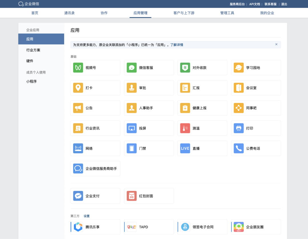 對(duì)于一些要求不高的中小型企業(yè),使用釘釘、企業(yè)微信作為數(shù)字化管理方案,并使用這些平臺(tái)附帶的審批、匯報(bào)等內(nèi)建應(yīng)用,以及平臺(tái)生態(tài)內(nèi)的第三方客戶管理、社區(qū)等子系統(tǒng),也能一定程度上滿足數(shù)字化轉(zhuǎn)型的需求。