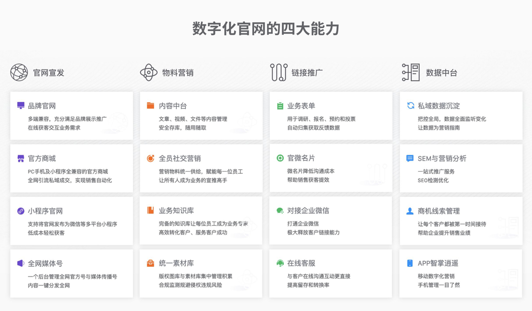 數(shù)字化官網(wǎng)對(duì)外獲客對(duì)內(nèi)管理的本領(lǐng),令其具備了作為數(shù)字化轉(zhuǎn)型系統(tǒng)的條件。