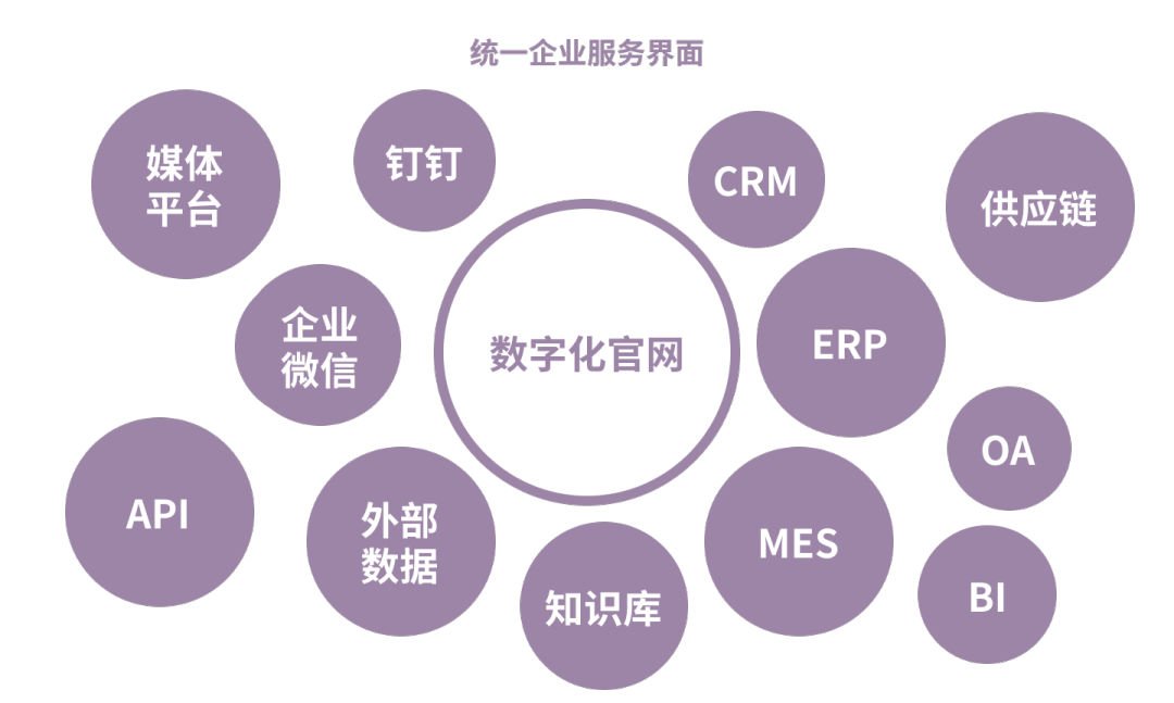 通過數(shù)字化官網(wǎng),實(shí)現(xiàn)「統(tǒng)一企業(yè)服務(wù)界面」,外部以客戶為中心,內(nèi)部以員工用戶為中心。