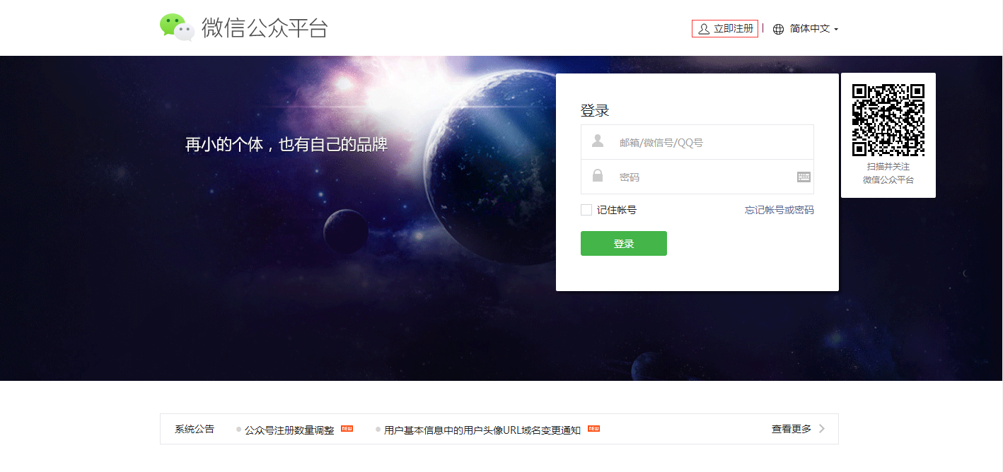 微信公眾平臺官方網(wǎng)址:https://mp.weixin.qq.com/