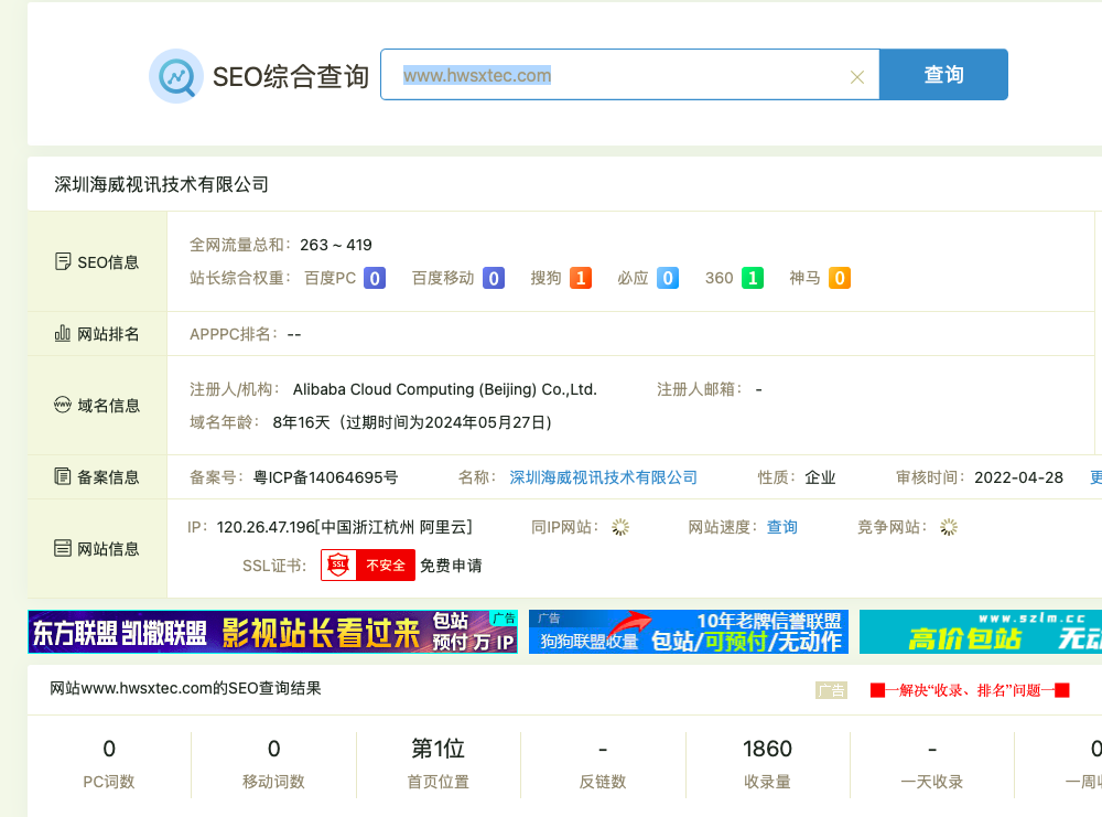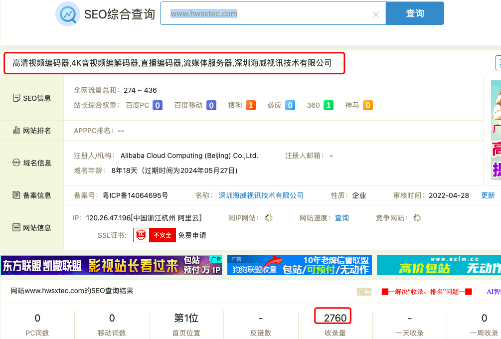 因為是老站,內部和結構,我們就不幫做調整了,一個月后,我們看通過過站看一下我們對深圳海威視訊技術有限公司網站SEO效果怎么樣?